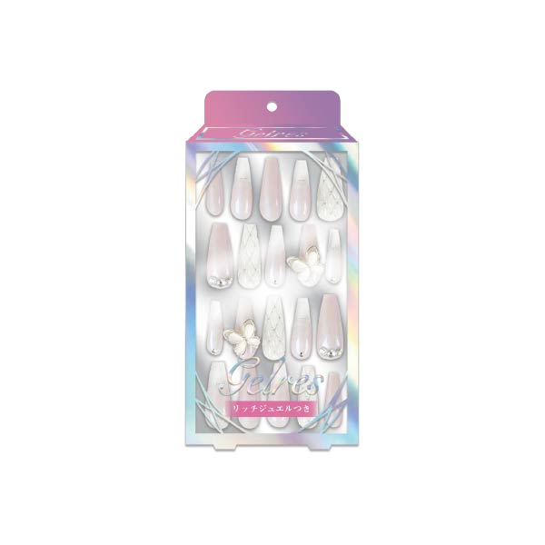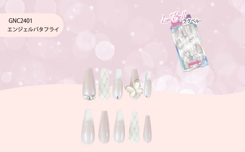 STジェリス ネイルチップ ラグベル〈エンジェルバタフライ〉 ゴージャスに指先を飾る、主役級ネイルチップ。 存在感抜群のクリスタルバタフライ付きです。 カラー 全4種類 品番 GNC2401 メーカー希望価格 ¥2,400(税抜) 内容量 ネイルチップ全8サイズ 20枚入り JANコード 4573225288165 個装サイズ W70×H152.5×D27mm オンラインショップはこちら 商品説明