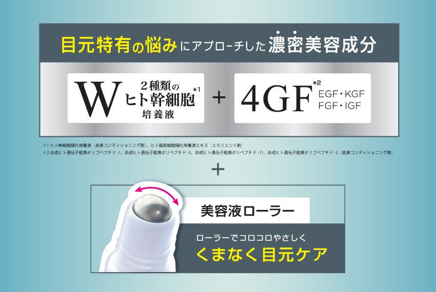 ヒト幹細胞順化培養液(皮膚コンディショニング剤)配合。